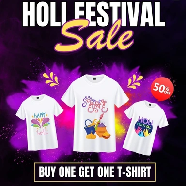 Happy Holi Men Printed Round Neck Poly Cotton White T-Shirt | India marketto